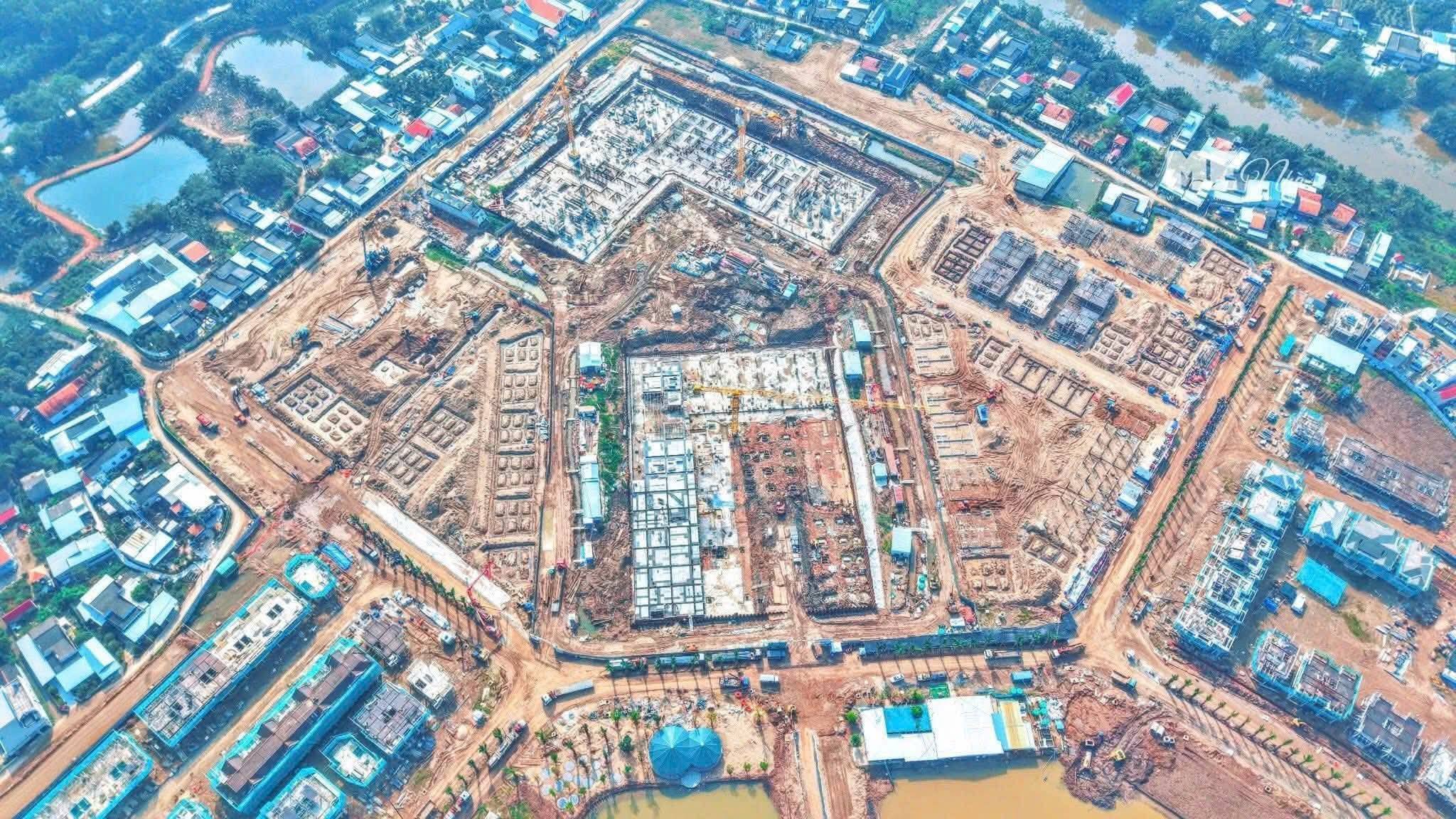 Việc nhiều khu chức năng được thi công song song cho thấy dự án đang bước vào giai đoạn hình thành rõ nét về mặt không gian đô thị, thay vì chỉ dừng ở mức hoàn thiện hạ tầng ban đầu.