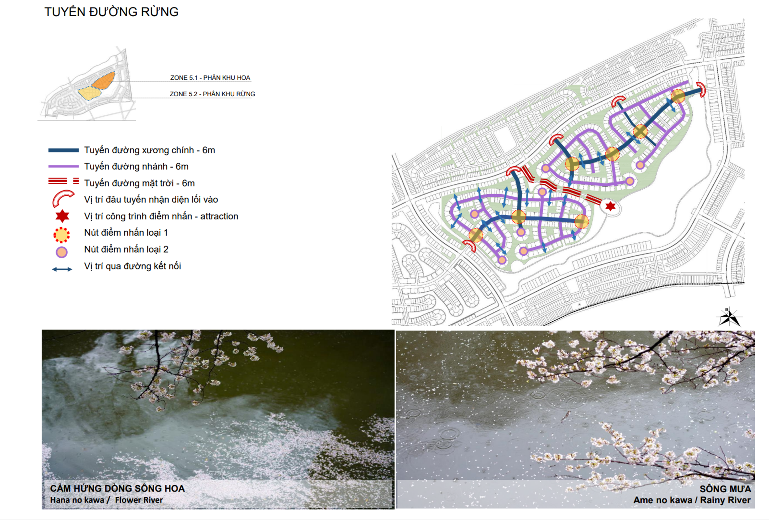 - Tuyến đường trục chính (6m): dẫn dắt cư dân xuyên qua các khu rừng nhỏ, kết nối các công viên lõi và khu tiện ích.