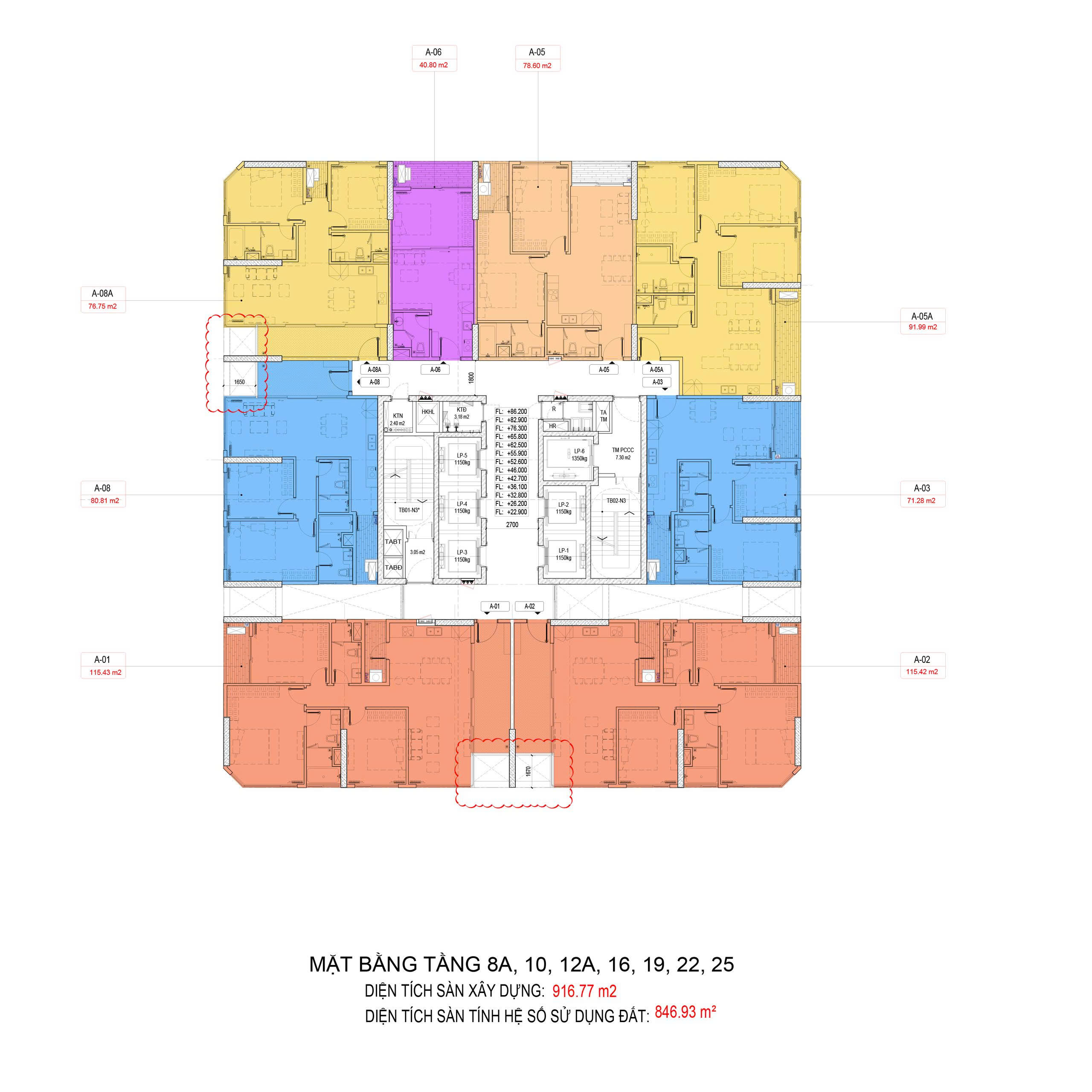 • Tầng 8A, 10, 12A, 16, 19, 22, 25: ~916,77 m²