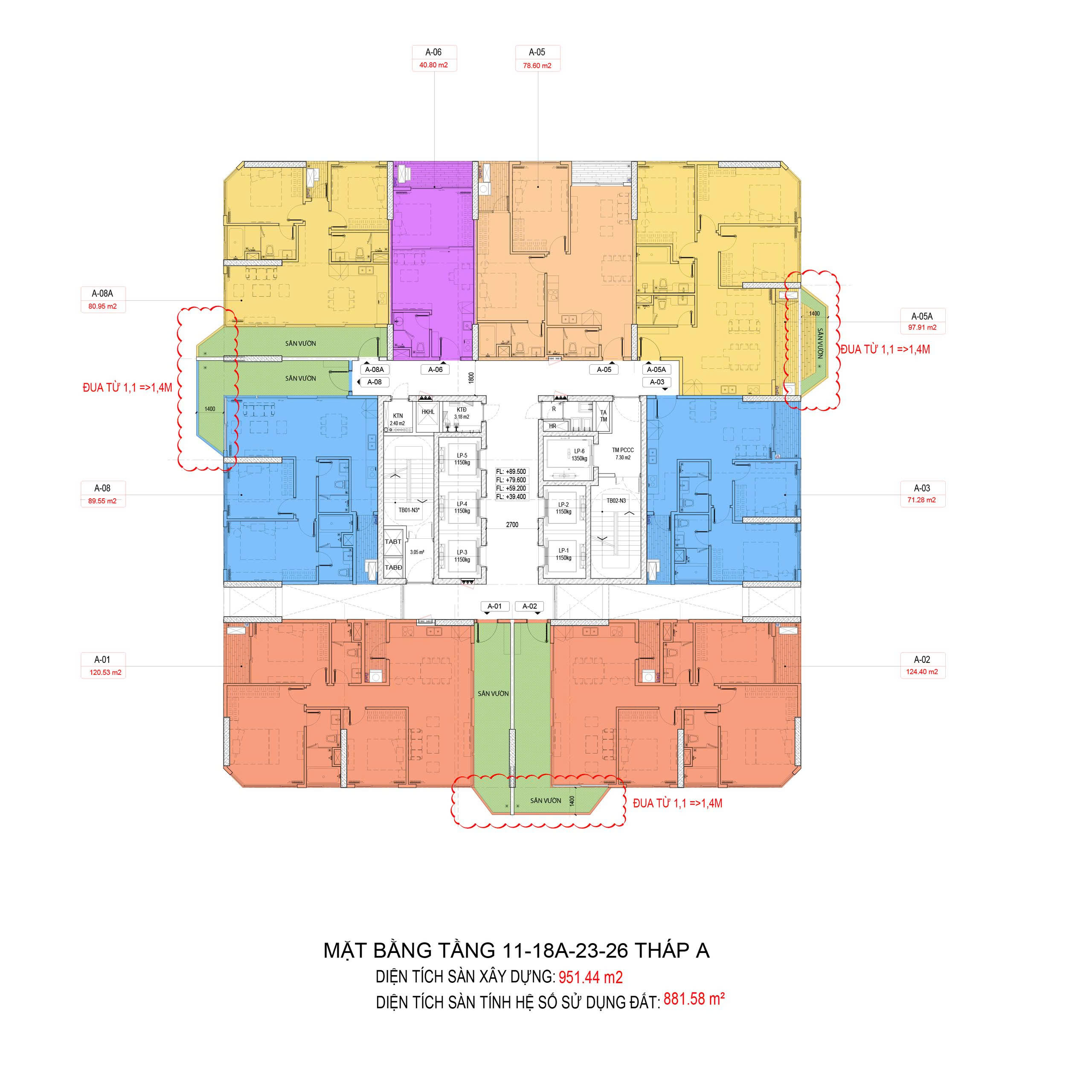 • Tầng 11, 18A, 23, 26: ~951,44 m²