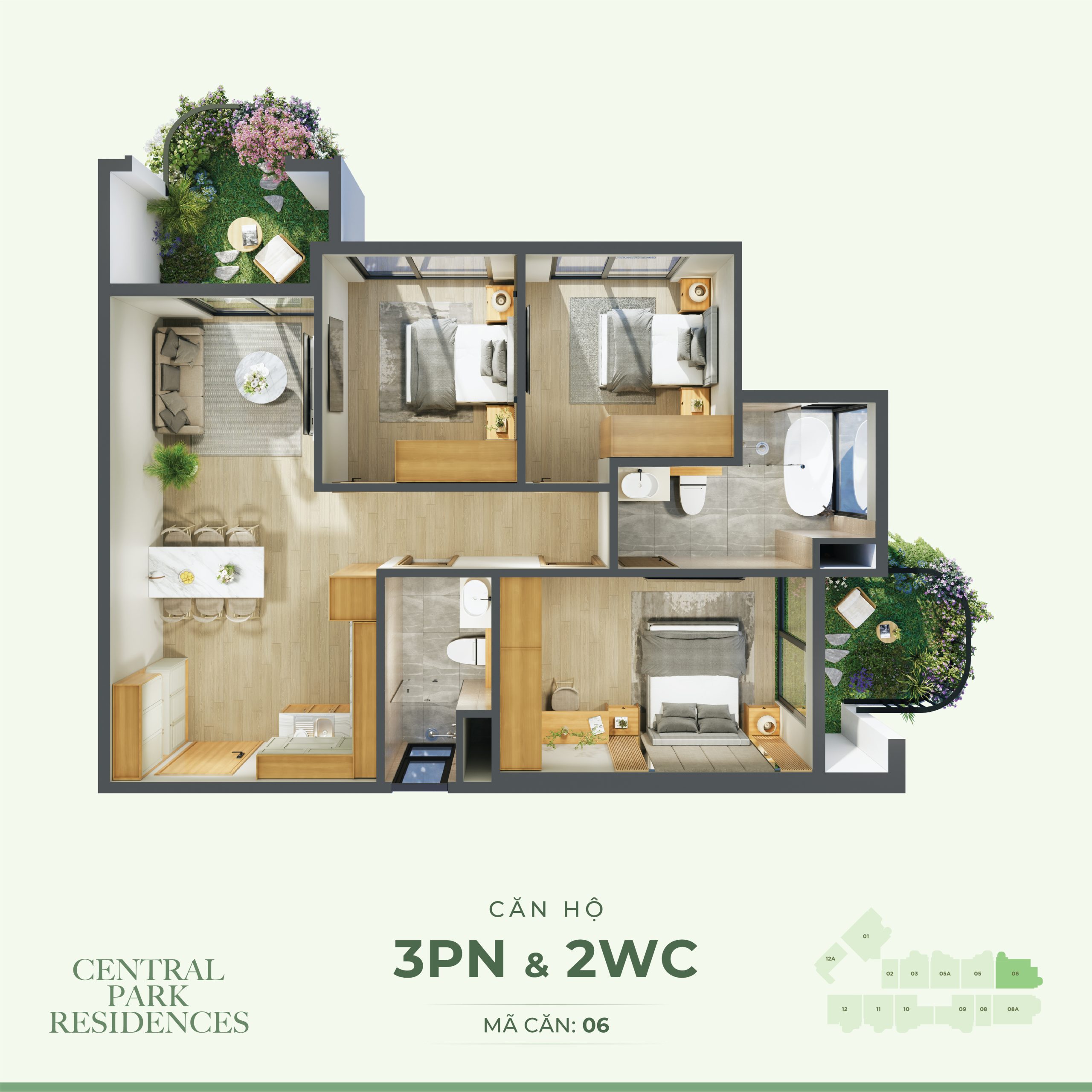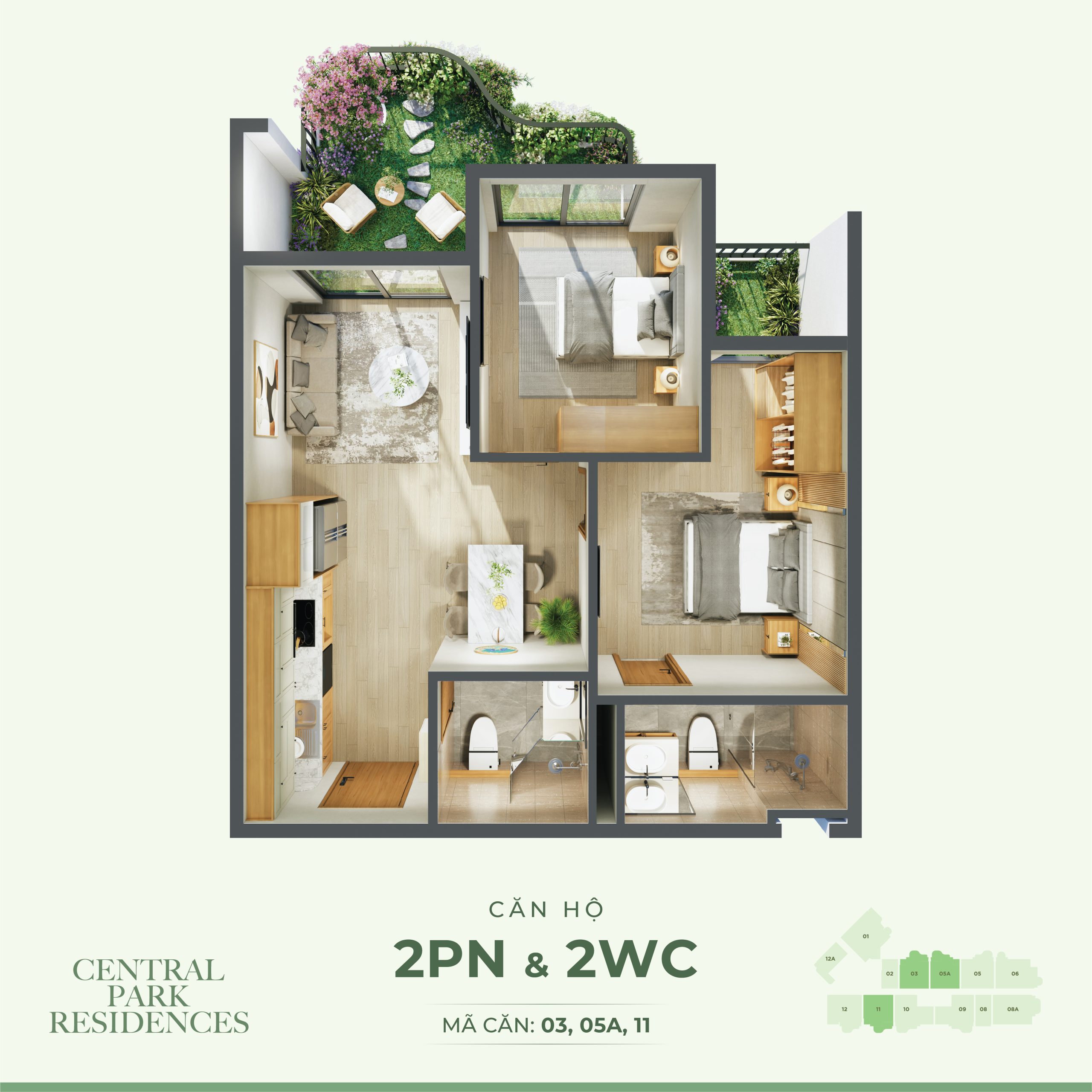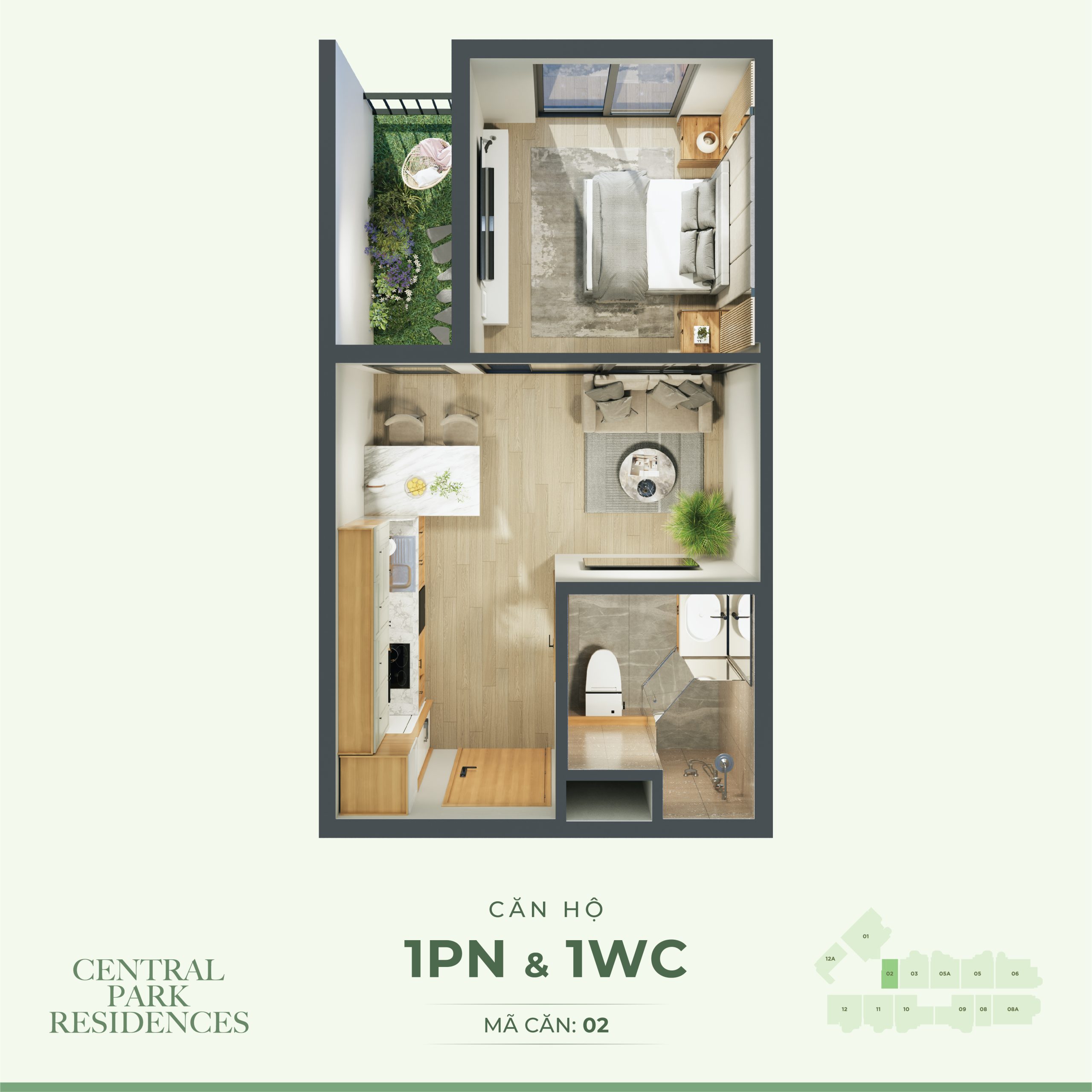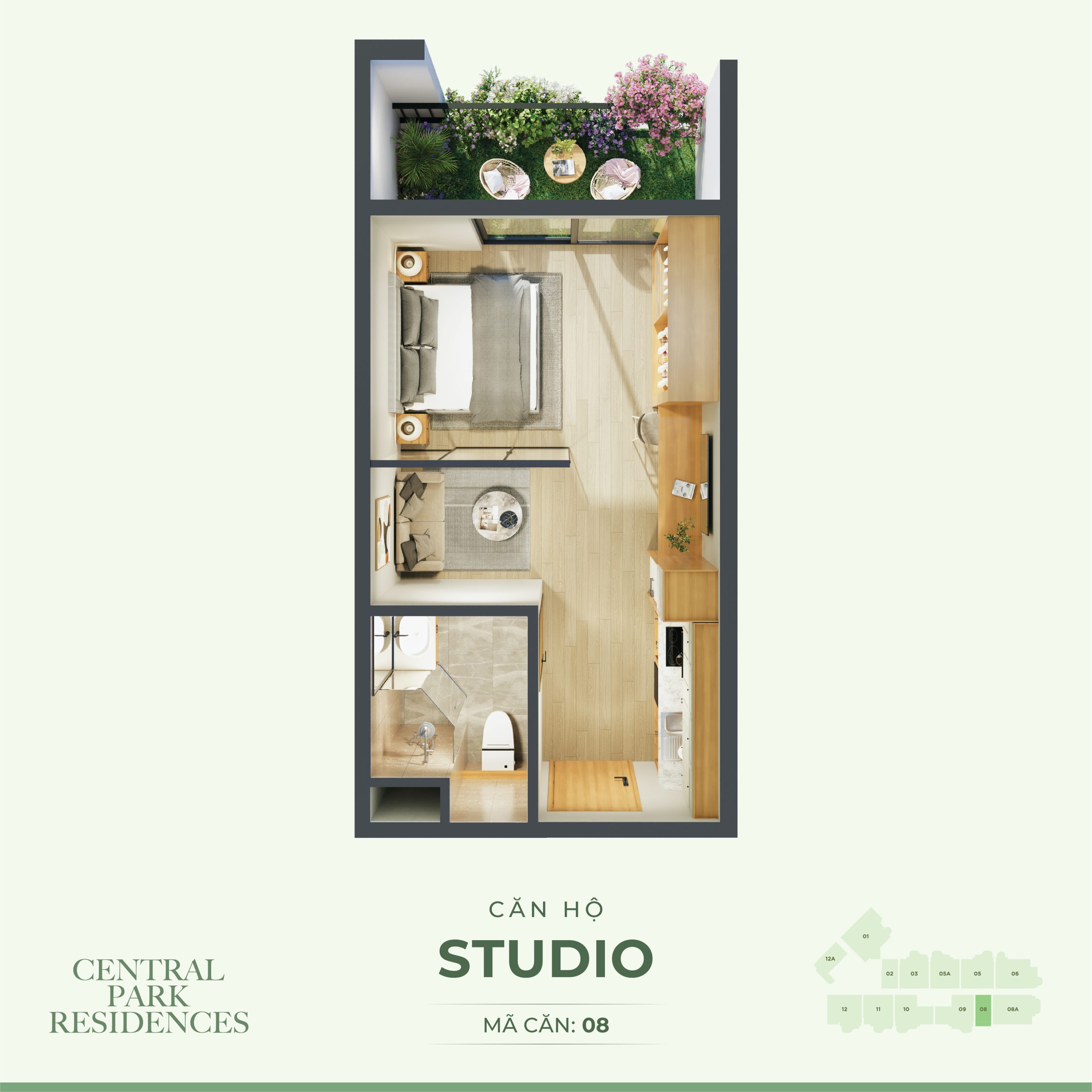 + Căn hộ điển hình: Studio, 1PN, 2PN, 3PN
