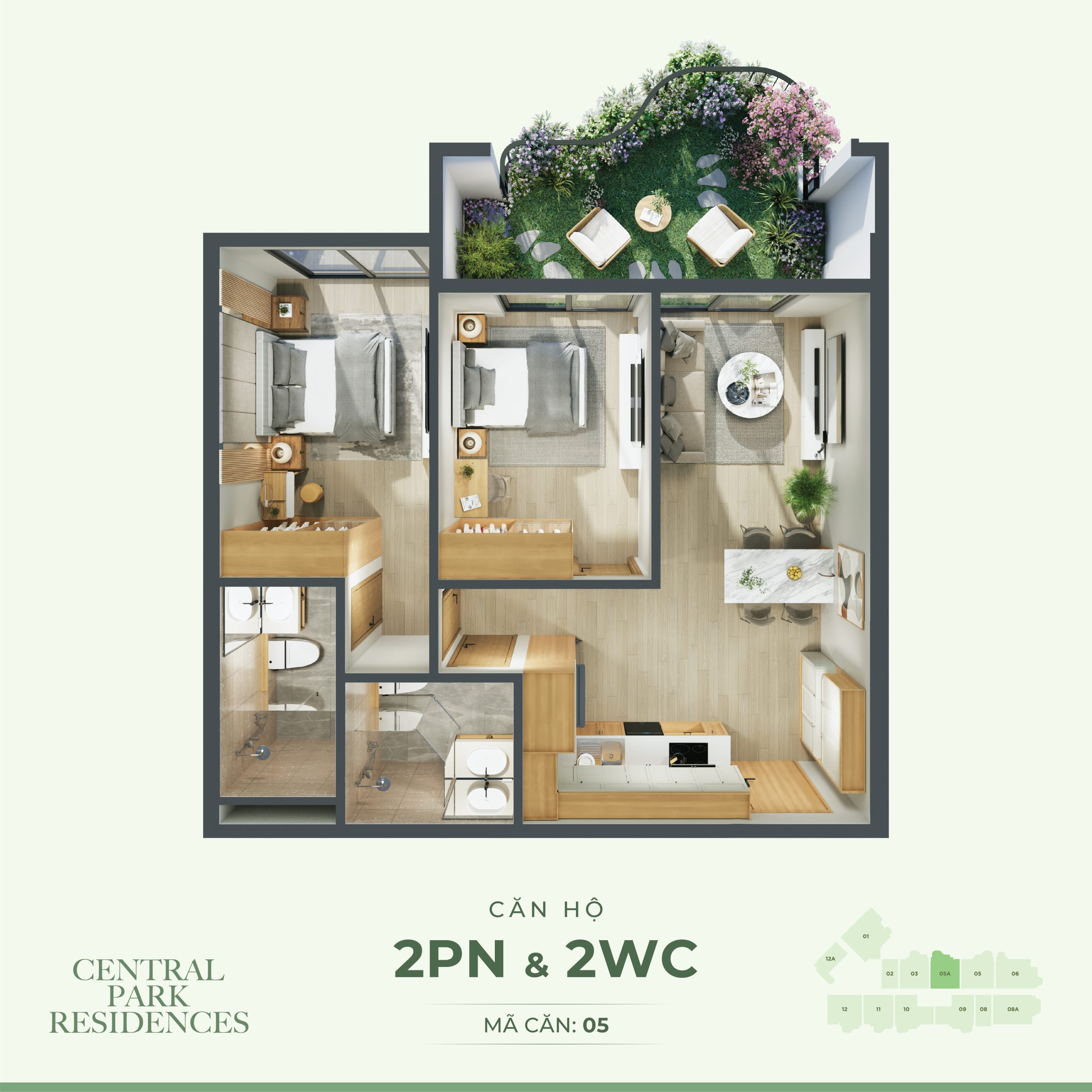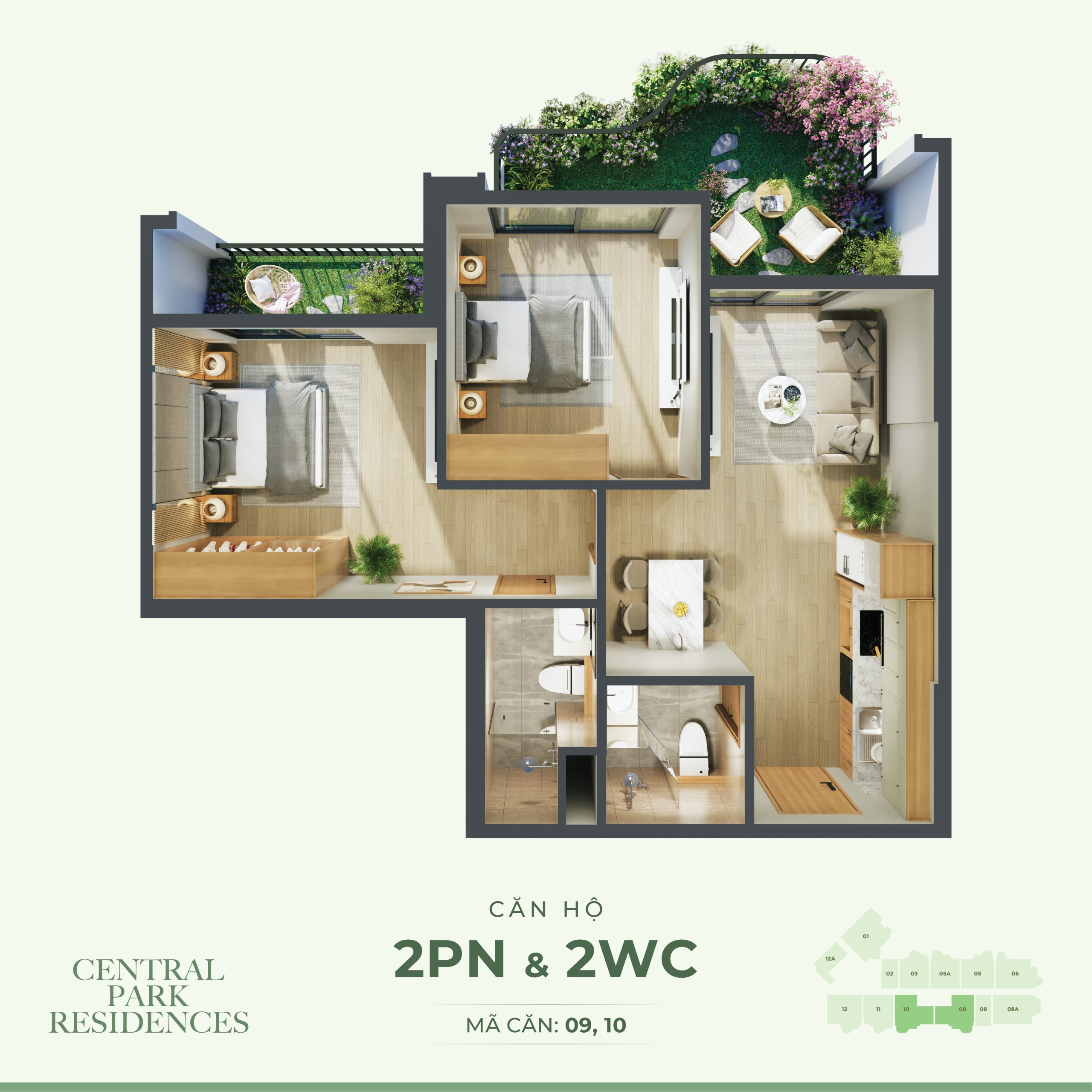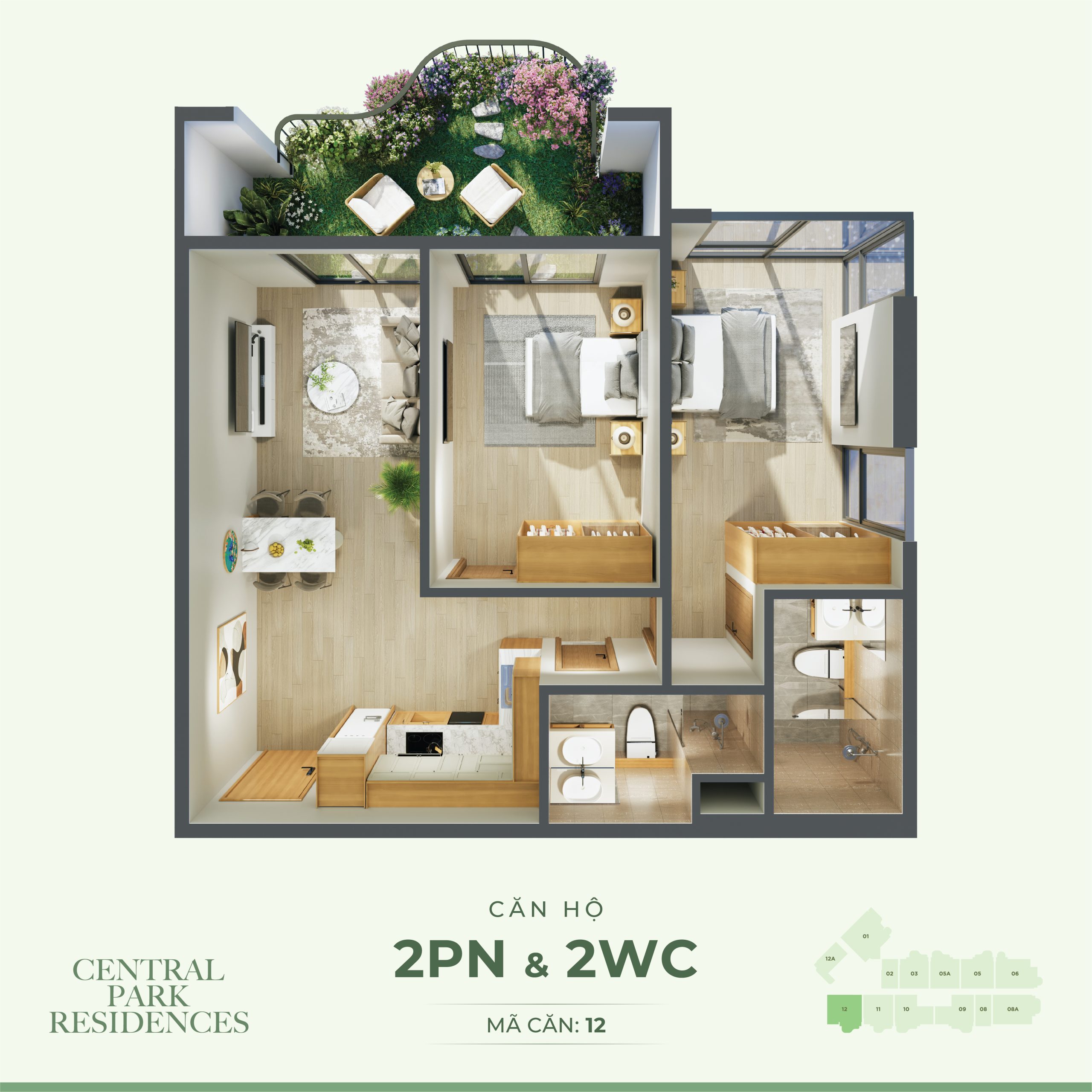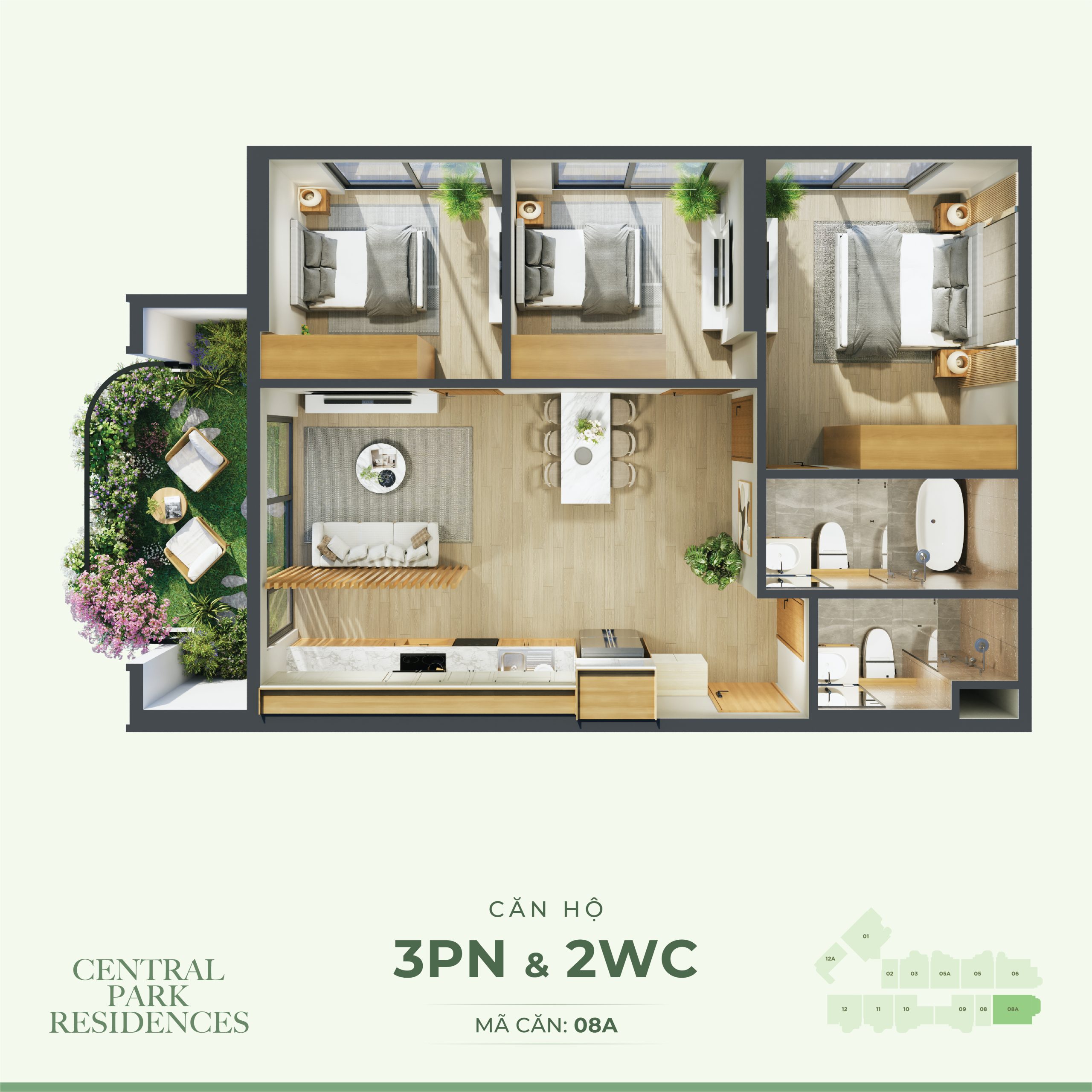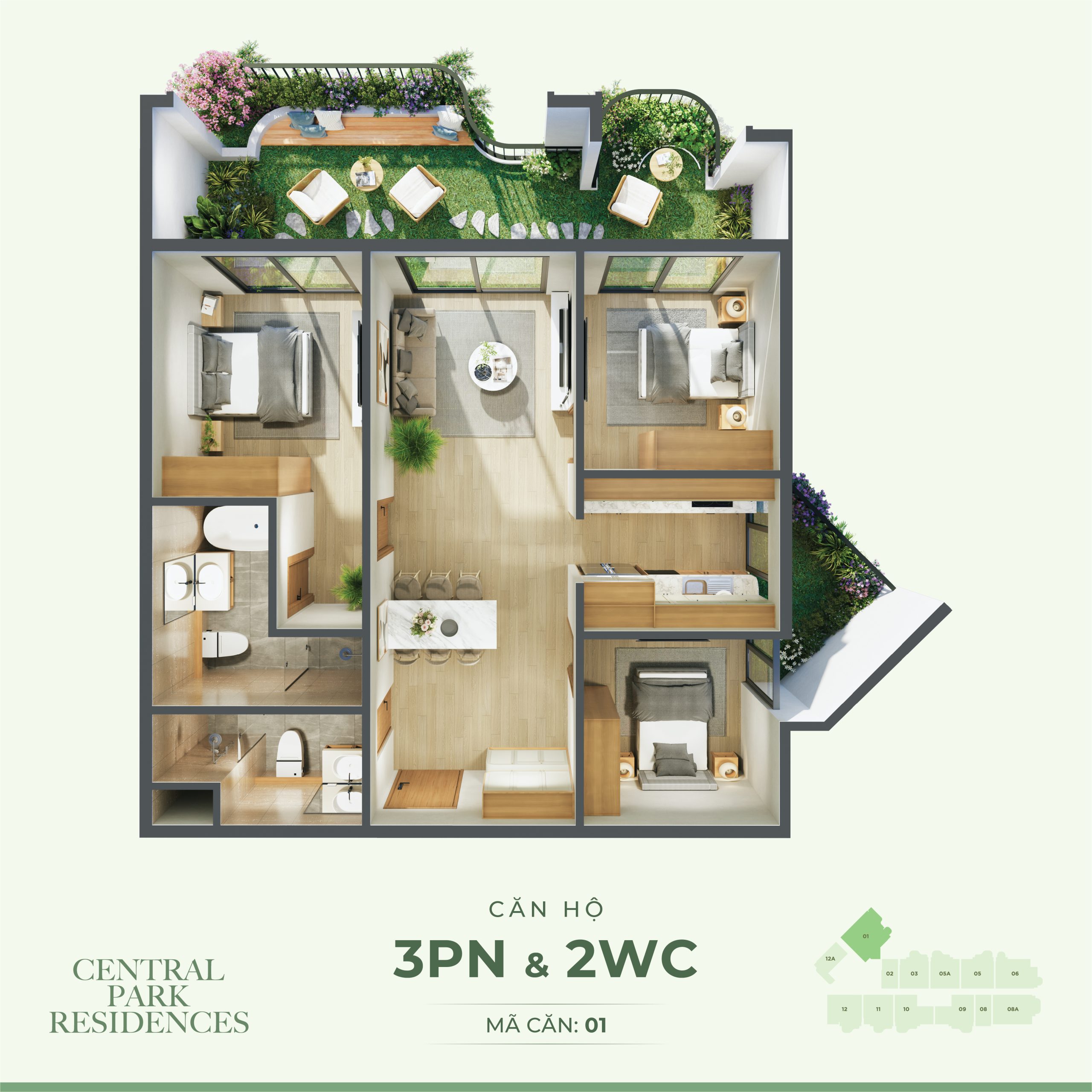 + Căn hộ điển hình: Studio, 1PN, 2PN, 3PN