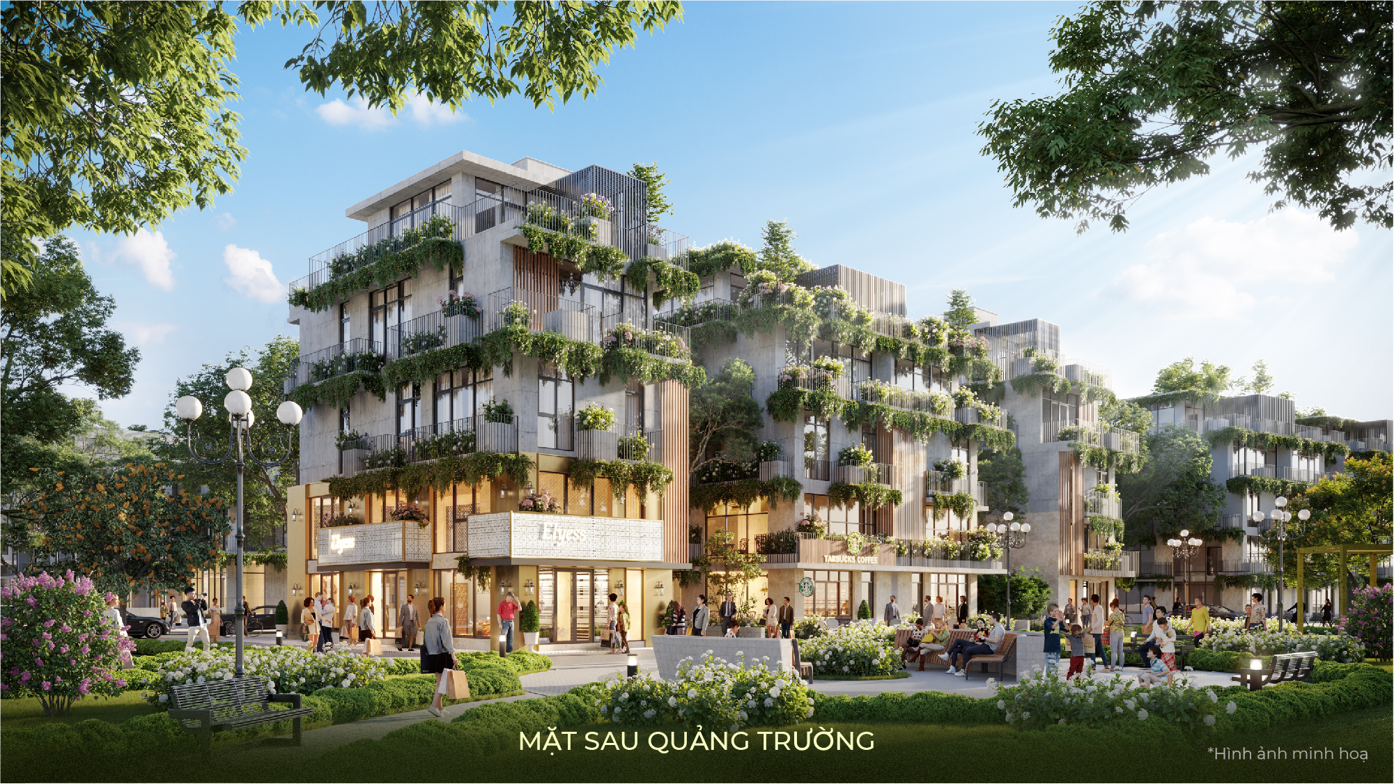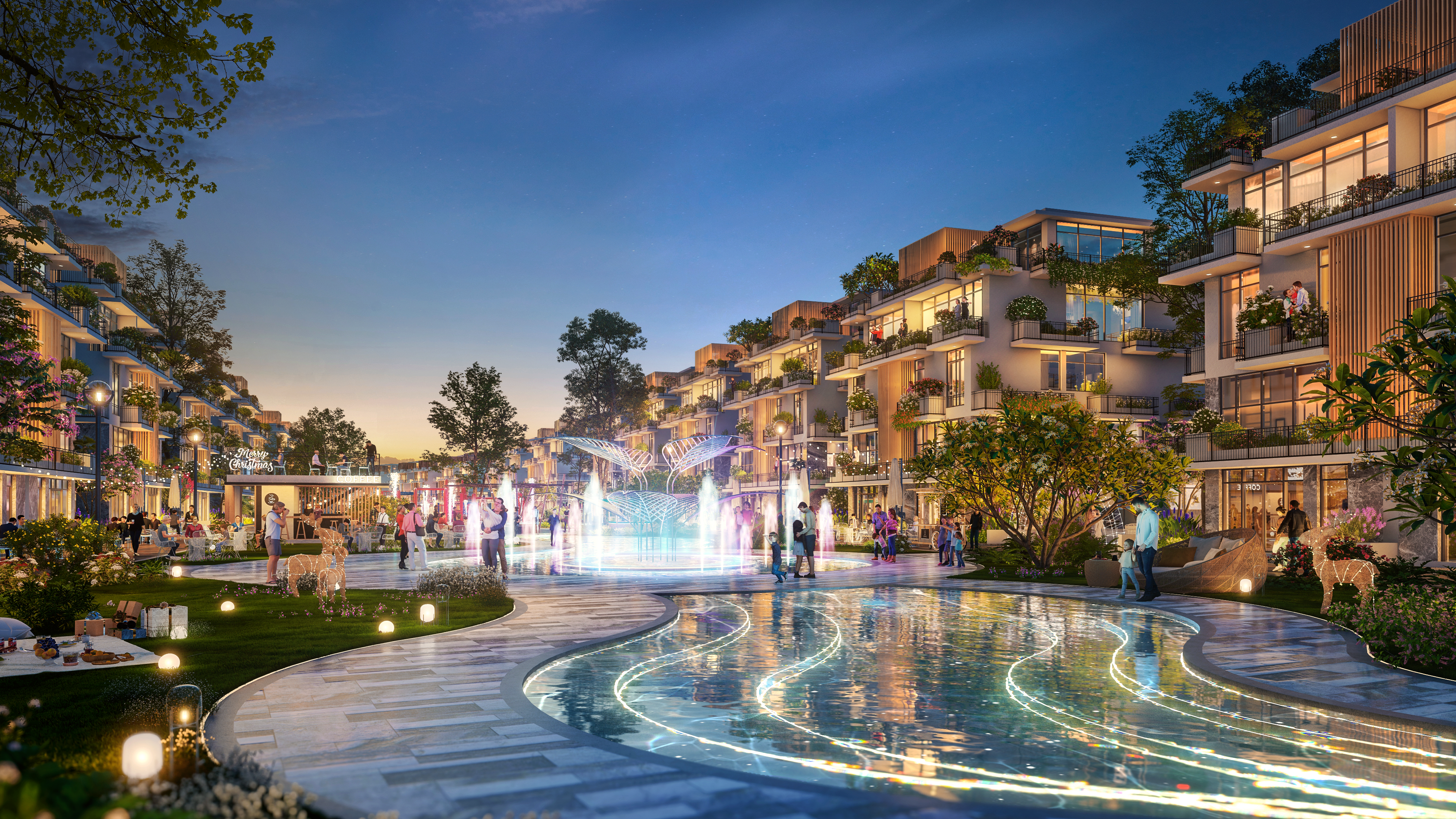 - Tiện ích: Quảng trường trung tâm | Quảng trường ánh sáng | Hồ bơi Resort | Khu thể thao ngoài trời | Vườn nấm | Vườn mưa nhiệt đới