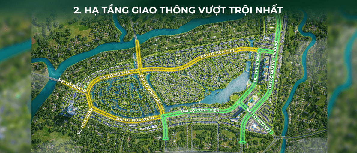 Xét trong phạm vi nội khu, vị trí Rừng Mai cho phép cư dân tiếp cận nhanh các tiện ích và không gian chức năng của Eco Retreat thông qua hệ thống giao thông nội bộ được phân bổ khoa học.